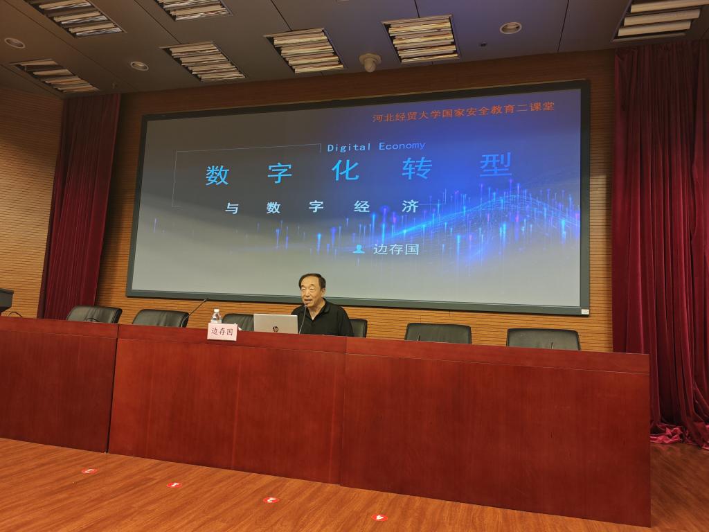 9月15日下午,本学期《新财经通识教育大讲堂》第2讲(总第99讲)在国际学术报告厅举行。河北省电子学会理事长边存国(正高级工程师)受邀为我校师生作题为“智变未来:数字化转型与数字经济”的学术报告,讲座由图书馆副馆长王玉卿主持,近300名师生参加。